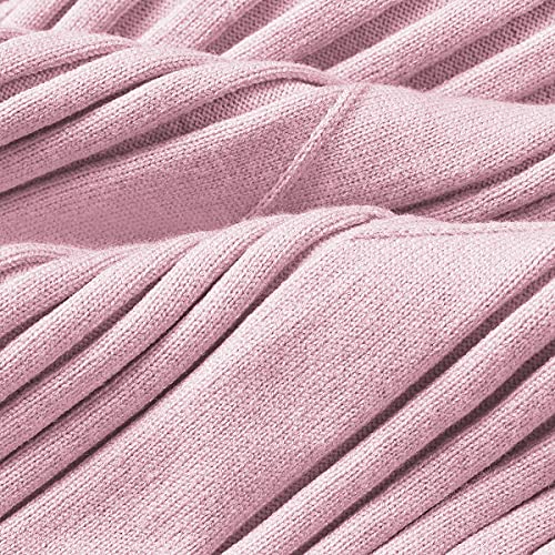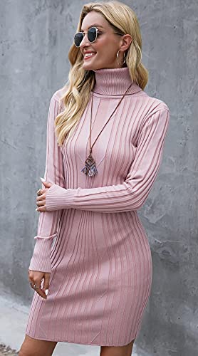 Vthereal Abito lavorato a maglia, da donna, con collo alto, a maniche lunghe, mini abito invernale casual, Colore: rosa., S