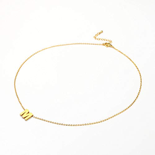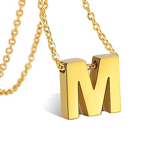 VU100 Collana Lettera Iniziale per Donne Ragazze-Script Alfabeto in Acciaio Inossidabile Lettera dalla M Tono Oro, Mamma Figlia Sorella Matrimonio Compleanno Regalo, Gioielli Catena 18 Pollici