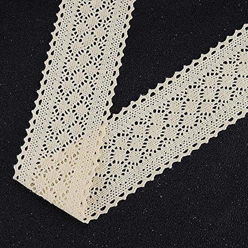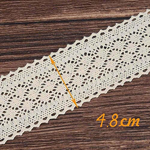 VU100 - Nastro In Pizzo All'uncinetto, In Cotone, Stile Vintage, Decorazioni Per Matrimoni, Confezionare Regaliartigianato Fai Da Te(Lunghezza 5m, Larghezza 4.5 Cm, Beige)