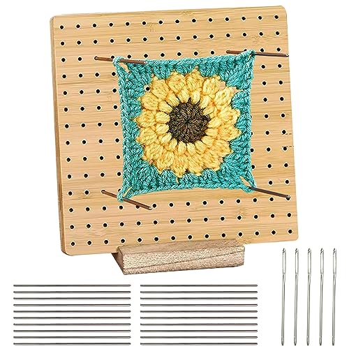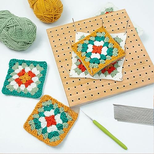 Vueinrg 20cm Tavola di Blocco In Legno, Scheda di Blocco Uncinetto, Tavola per Uncinetto Square con Base in Legno, 20 Perni in Acciaio Inox e 5 Uncinetto, per Gli Amanti del Lavoro a Maglia
