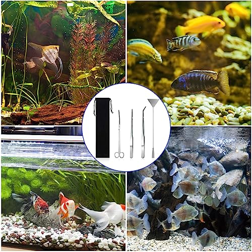 Vueinrg 4 in 1 Set di Attrezzi per Acquario, Acquario in Acciaio Inox Kit Pinzette Forbici Spatola con Borse di Stoccaggio Accessori Acquario per L'acquario Landscaping e Piante Acquatiche