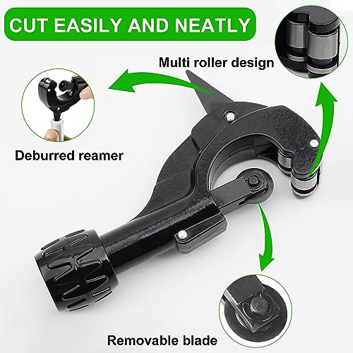 Vueinrg Tagliatubi, 3 a 35mm Tagliatubi per Tubi, Tagliatubo in Acciaio Inossidabile con Dispositivo Sbavatura e 3 Dischi Taglio Ricambio Adatto Per Tagliare Tubi in Acciaio, Rame, PVC, Alluminio