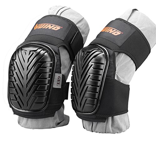 VUINO, ginocchiere professionali imbottite, resistenti, in schiuma di EVA, con imbottitura in comodo gel e cinghie adesive regolabili, per lavoro, giardinaggio, pulizia, pavimentazione, Nero