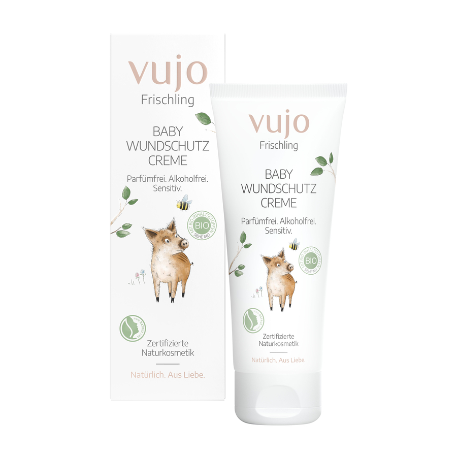 Dettagli del prodotto: La cura speciale per una vicinanza pura al vostro bambino Se la pelle del vostro bambino è arrossata o irritata, è necessaria una cura intensiva immediata. La crema protettiva per ferite vujo Frischling aiuta rapidamente e previene le irritazioni. Trattiene l'umidità, cura delicatamente le zone ruvide e agisce come strato protettivo child sulla pelle sensibile. Con zinco di alta qualità e oli biologici naturali Raccomandata dai dermatologi Ingredienti: Olio di semi di Ricinus Communis*, Cera di buccia di Rhus Verniciflua, Olio di semi di Helianthus Annuus*, Ossido di zinco, Burro di Butyrospermum Parkii*, Tocoferolo, Palmitato di Ascorbile * da agricoltura biologica certificata Istruzioni per la conservazione e la cura: Applicare una piccola quantità sulla pelle dell'area del pannolino pulita e asciutta e spalmare delicatamente. La crema protettiva è ideale anche per la pelle arrossata o irritata al di fuori dell'area del pannolino. Appositamente sviluppata per la pelle sensibile del bambino, vujo Frischling Baby Wound Protection Cream è neutra per la pelle e favorisce il naturale sviluppo della barriera protettiva della pelle. È adatta fin dall'inizio per la cura quotidiana della pelle normale, sensibile o soggetta a neurodermite.