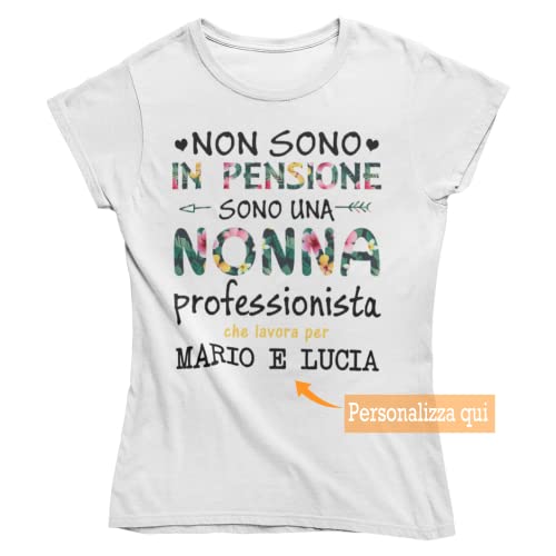Vulfire Maglietta Donna Personalizzabile, Idea Regalo per Le Nonne, Non Sono in Pensione Sono Una Nonna Professionista (S, Bianco)