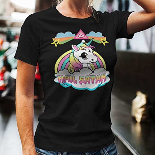 Vulfire Maglietta Donna, Unicorno, Hail Satan Unicorn, Vestito Unicorno, T Shirt Donna Divertenti, Magliette Ragazza Tumblr, Maglia Unicorni Simpatica, Tshirt Unicorn Ragazze (Nero, M)