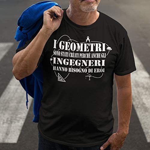 Questa maglietta divertente uomo geometra con su scritto "I geometri sono stati creati perchè anche gli ingegneri hanno bisogno di eroi" è fatta apposta per tutti i geometri che sanno di essere meglio degli ingegneri. Se anche tu sei un geometra o conosci qualcuno che lo è e possiede gadget professionali lavoro come portadocumenti, penna stilografica, borsa tracolla uomo allora questa t shirt è perfetta. Può essere indossata in qualsiasi circostanza, è una perfetta e simpatica idea regalo