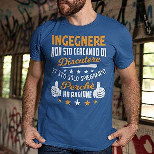 Questa fantastica e divertente maglietta ingegneri con su scritto "Ingegnere, non sto cercando di discutere ti sto solo spiegando perchè ho ragione" è fatta apposta per tutti gli ingegneri. Se anche tu ti ritrovi in questa descrizione questa t shirt divertente è perfetta. Può essere indossata in qualsiasi circostanza, è una simpatica idea regalo, per scherzi laurea, scherzi divertenti ingegneria, regali addio al nubilato, celibato, laurea uomo ingegneria civile, maglia ingegneri divertente
