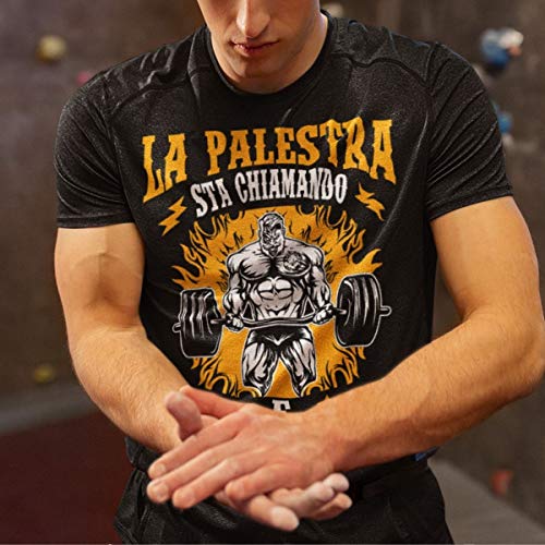 Questa maglia divertente uomo con su scritto "La palestra sta chiamando e io devo andare" è fatta apposta per tutti gli appassionati di palestra, bodybuilding, attrezzi palestra in casa, running, e allenamento. Se anche tu vai con piacere in palestra questa t shirt gym è perfetta. Può essere indossata in qualsiasi circostanza ma soprattutto mentre ti alleni, in alternativa ad una canotta uomo palestra, assieme a pantaloncini bodybuilding, è una perfetta e simpatica idea regalo compleanno