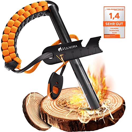 VULNORA acciarino - lunghezza 12,7 cm, diametro 1,27 cm, con manico in paracord, fischietto di segnalazione | Accendifuoco XXL - pietra focaia di sopravvivenza all'aperto, attrezzatura Bushcraft