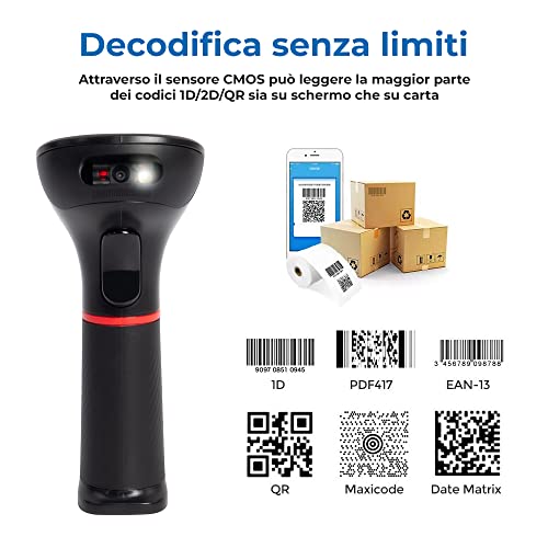 CONTENUTO DELLA CONFEZIONE| Barcode Scanner Wireless e Bluetooth 2D, Cavo USB di ricarica, ricevitore USB wireless, Manuale di istruzioni