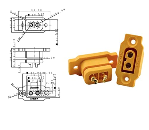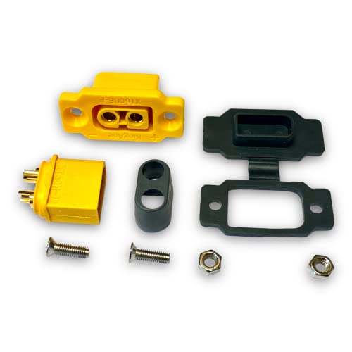 Coppia di connettori ad alta corrente XT60BE-F da incasso dorati con tappi in gomma e viti e connettore XT60H per batteria Lipo XT60 a 2 pin, a prova di polarità, adatto per fai da te, modellismo, copter, barca, drone, moto, bici elettrica, scooter, auto, camper, RC, aereo, strumenti