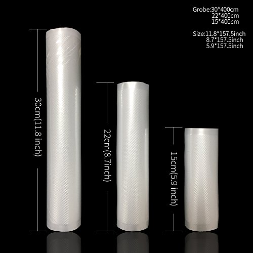 Vuoto di vuoto sacchetto 3 rotoli, vaku umfolienrollen, Profi folienrollen vuoto fogli 30 x 400 cm/22 x 400 cm/15 x 400 cm, Profi fogli per vuoto iergeraet Stabile della saldatura per Sous Vide cottura