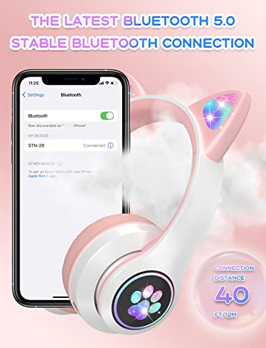 Connessione Bluetooth 5.0 e microfono HD incorporato: Non c'è più bisogno di preoccuparsi del groviglio di cuffie cablate. Le cuffie wireless VuyKoo per bambini con orecchio di gatto adottano il più recente Bluetooth 5.0 per rendere le connessioni più stabili. Riproduzione, pausa, canzone successiva/precedente, risposta e fine delle telefonate con un semplice tocco di pulsante. Il microfono HD incorporato nelle cuffie bluetooth per bambini consente di effettuare chiamate.