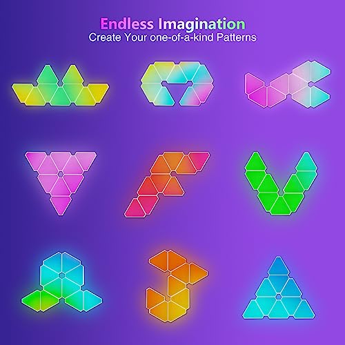 ✨ Kit Smart Luci Triangolari LED Parete Fai-da-te: Progetta il layout del tuo pannelli LED triangolari rgbic o scegli tra tantissimi design consigliati nell'app. Crea un'illuminazione personalizzata per la tua sala giochi, soggiorno, camera da letto e altre scene di decorazione murale