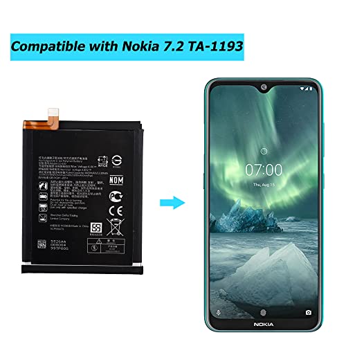 Questa batteria è appositamente progettata per Nokia 7.2 TA-1193 TA-1178 TA-1196 TA-1181, può sostituire la vecchia batteria, Tech-Skills può essere utilizzata durante la sostituzione della batteria.