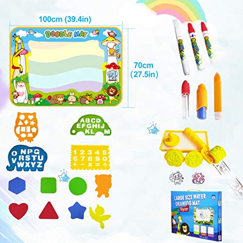 Vykor Aqua Mat - Tappetino da disegno ad acqua, 70 x 100 cm, tappetino da viaggio per disegnare e dipingere con acqua, con penne a forma di scarabocchio, dipingere, idea regalo per bambini