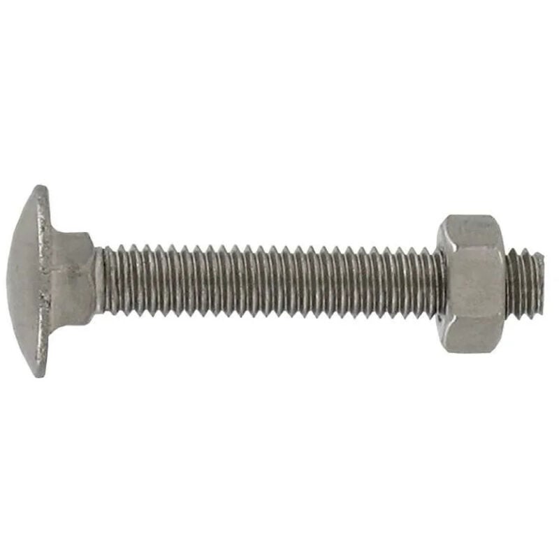 Bullone a testa tonda con collare quadrato, acciaio inox A2 6x70mm, 4 pezzi VYNEX riferimento 403536. Dimensioni: 6 mm di diametro x 70 mm di lunghezza. Materiale: acciaio inox A2. Utilizzato per assemblare due parti preforate. Fissaggio metallo-metallo, legno-metallo, legno-legno, assemblaggio di falegnameria, carpenteria e costruzioni pesanti.