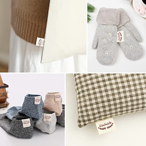 VZXQX Etichette Handmade Tessuto, 100 Pezzi Etichette Tessuto da Cucire Personalizzate per Vestiti Fai da Te Accessori, Etichette per Abiti in Tessuto with Love, Beige