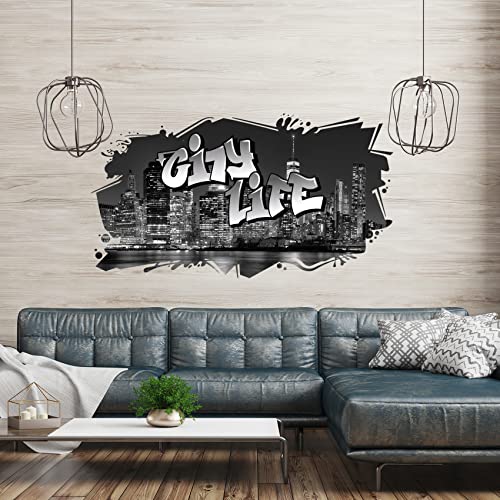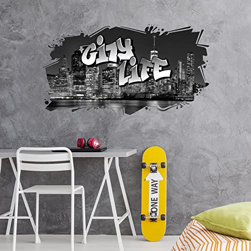 W008 - Adesivo da parete 3D Graffiti, 97 x 53 cm, motivo street art, per camera da letto dei ragazzi e soggiorno, senza nome a scelta
