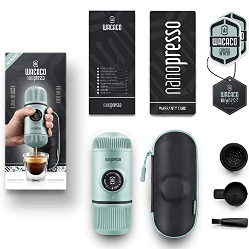 WACACO Nanopresso - Caffettiera portatile con custodia protettiva, versione aggiornata di minipresso, mini macchina da caffè da viaggio, perfetta per campeggio, viaggi e ufficio (blu artico), BaregAB
