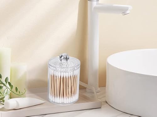 Materiale acrilico Qtip barattolo: questo dispenser per tamponi di cotone è realizzato in acrilico resistente di alta qualità con una superficie liscia e piana e ciascuno viene fornito con un coperchio, essere sicuro e difficile da non rompere, che è antipolvere e impermeabile nell'organizzatore del bagno, mantiene gli oggetti integrati puliti, sicuri. lascia tutto pulito e organizzato