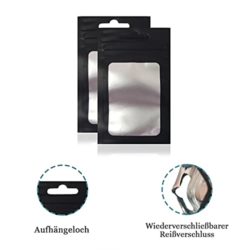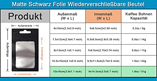 WACCOMT Pack 100 Sacchetti in Mylar Nero Richiudibili di Alluminio per Conservare Chicchi di Caffè con Foro a Sospensione 10 x 18 cm