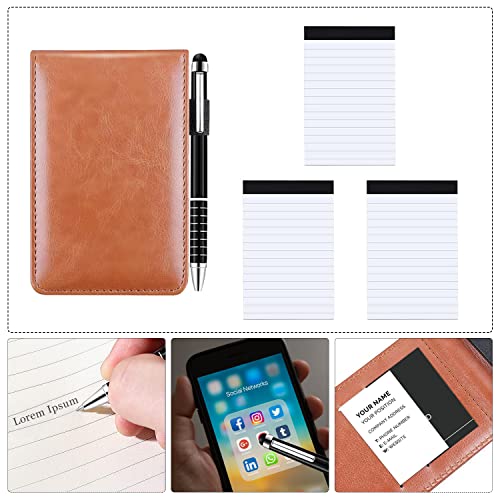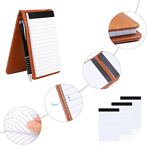 WACH AUF Mini Porta Taccuino Tascabile, Taccuino Tascabile In Pelle Taccuino A7 Con Penna, Piccolo Blocco Note in Pelle con 50 Fogli a Righe, 3 Pezzi 30 Fogli A7 Taccuini Sostitutivi(Marrone)