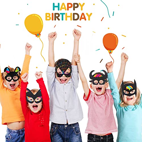 WACH AUF 24 Pezzi Maschere Scratch Art, Maschere di Supereroi, Maschere di Animali di Carta da Grattare, Maschera da Grattare con Bastone e Corda Perfetti per i Bambini da Decorare e Personalizzare