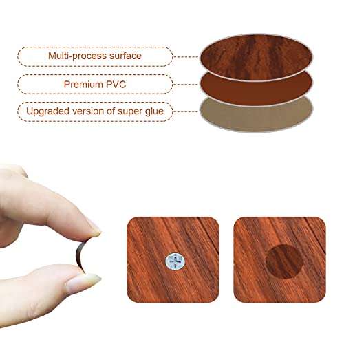 【Motivo in legno realistico】Il adesivi copriforo vite è un motivo a venature del legno uniforme, adatto per mobili con una varietà di stili di venature del legno. Il suo diametro è di circa 21 mm e lo spessore è di 0,2 mm, non sarà evidente se incollato sui mobili. Quando non ti serve, puoi strapparlo rapidamente e facilmente dai mobili senza lasciare residui.