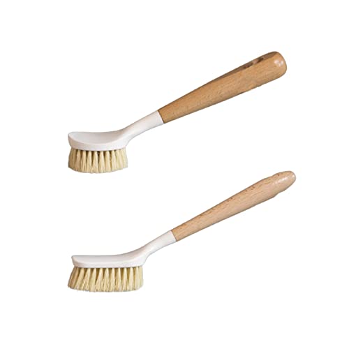 WADC, Spazzola per Piatti in Legno Spazzola per Piatti con Manico Lungo Spazzola per Piatti Resistente Set di Spazzole per Lavastoviglie per Pulire Ciotole, Pentole e Lavelli 2 Pezzi (Colore Legno)