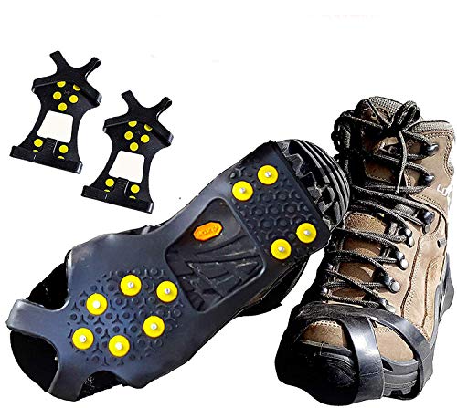 WADEO Denti Antiscivolo Scarpa Copriscarpe,Trazione Antiscivolo su Scarpe/Stivali 10 Borchie Neve Ghiaccio Ramponi Tacchetti Snow Ice Spikes L
