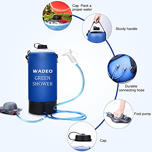 WADEO Docce da Campeggio Borsa da Doccia Camping con Pompa A Pedale E Impugnatura Doccia, Gonfiabile Pieghevole Portatile Doccia Acqua Bagno Esterni Auto, Animali Domestici, Blu