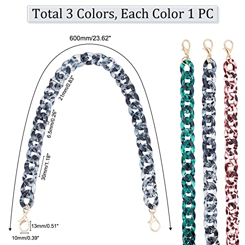 WADORN 3 Colori Tracolla a Catena per Borsa in Resina, 60 cm Leopard Borsa a Catena Manico di Ricambio in Resina Spessa Catena Piatta per Borsa a Catena Accessori Decorazione per Le Donne Hobo Bag