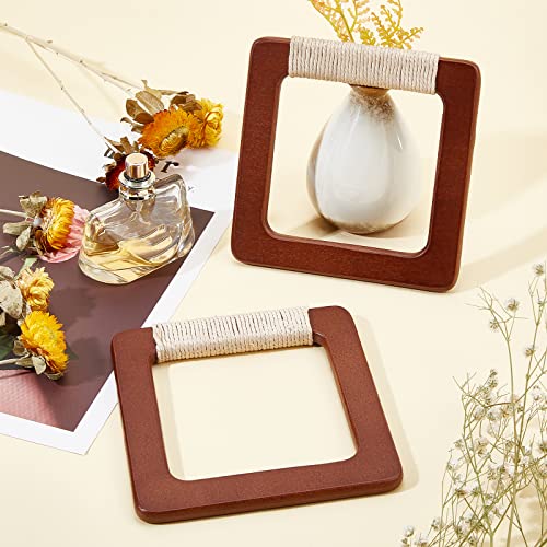 Manico quadrato in legno: manico quadrato marrone sella unico, moda retrò, sostituto perfetto per gli accessori della maniglia della borsa, adatto per borse a maglia, borse all'uncinetto, borse da spiaggia, borse di paglia.