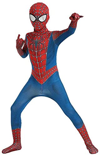 Waeihh Costume da Spiderman 3D anime per bambini, accessori per feste, Halloween, carnevale, cosplay, supereroe spandex lycra (120 ~ 130 cm, blue)