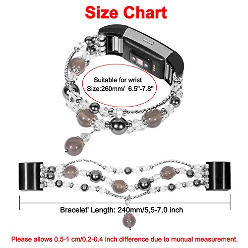 Materiale di alta qualità: il cinturino Fitbit Charge 2 è realizzato in corda flessibile e durevole, unico ed elegante, confortevole. Design di lusso con perle, può essere utilizzato come braccialetto. Elegante ed elegante