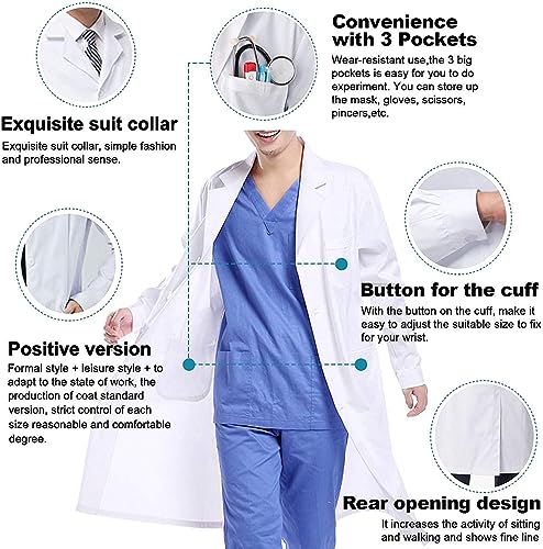 Protezione: Questo camice per laboratorio di chimica professionale protegge da fuoriuscite, sporco e spruzzi. Adatto a professionisti della medicina, scienziati, biologia, corsi di chimica, industria, facoltà di medicina