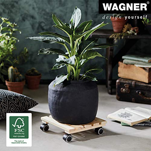 WAGNER Carrello per piante COUNTRY 28 x 28 x 8 cm I Carrello per fiori per interni, naturale I Tavoletta antiscivolo I Portavaso in legno massello FSC® con Ruote I Portata 100kg I Fatto in UE-20020101