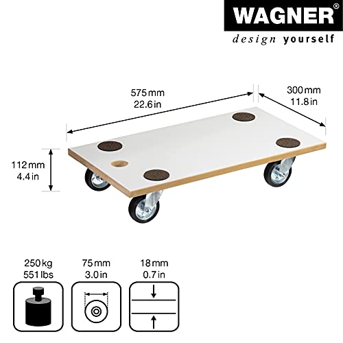 WAGNER Carrello da trasporto MM 1316 I 57,5 x 30 cm I ruote in gomma piena silenziose I cuscinetti antiscivolo I rivestimento speciale I portata 250 kg I facile da pulire I robusto - 20131601