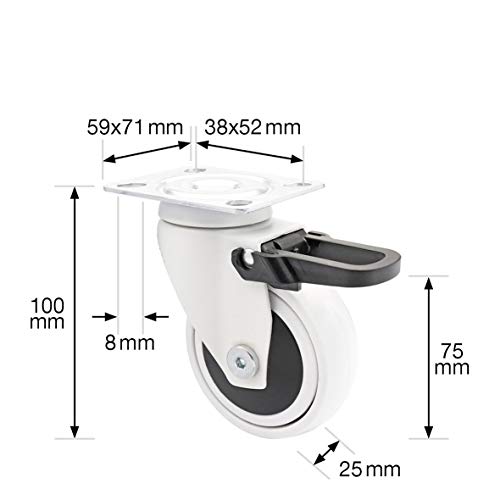 WAGNER design yourself 01237601 girevole trasporto/Ruota per mobili con freno e piastra a vite, Bianco, (Ø) 75 mm