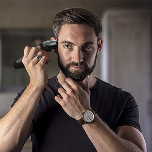 Trimmer regolabarba: mantieni la barba, taglia e regola con il trimmer insieme ai pettini guida per trimmer per lunghezze precise di taglio. Questo trimmer compatto viene fornito con sei pettini accessori con lunghezze di taglio da 0,4 mm a 13 mm.