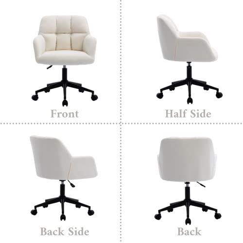 Wahson Sedia da Scrivania Girevole in Velluto Sedia da Ufficio Imbottita con Rotelle Regolabile in Altezza, Poltrona Ufficio per Computer/Studio,Bianco