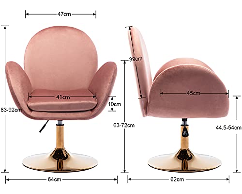 Wahson Sedia da Scrivania in Velluto Sedia da Ufficio Girevole Poltrone Regolabile in Altezza, Poltroncina Sgabello da Bar Computer per Studio/Camera,Rosa