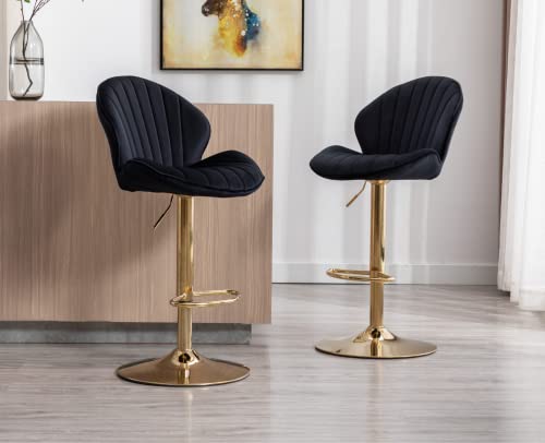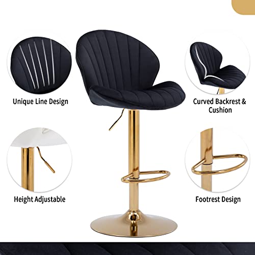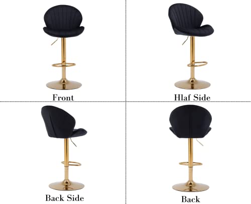 Wahson Set di 4 Sgabelli da Bar in Velluto Sgabelli Cucina Moderni Sgabelli Alti con Schienale, Sedie da Bar Regolabile e Girevole (Nero)