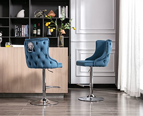 Wahson Set di 4 Sgabelli da Bar in Velluto Sgabelli Cucina Moderni Sgabelli Alti con Schienale, Sedie da Bar Regolabile e Girevole(Blu)