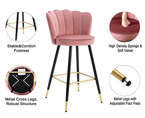 Wahson Set di 2 Sgabelli da Bar in Velluto Sgabelli Cucina Moderni Sedia da Bar con Schienale, Sgabelli Alti per Cucina Bancone,Rosa