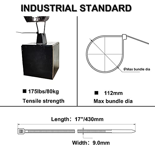 WAHSURE Fascette stringicavo per cavi elettrici plastica grosse 430 mm lungo, 80 kg, resistenti ai raggi UV, 100 pz, 9 mm di larghezza, per uso interno ed esterno