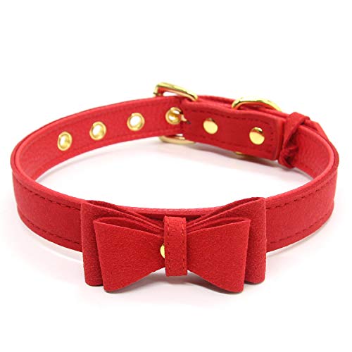 Kom Waire Colletto Girocollo Choker Fiocco Punk per Donna e Ragazza, Collana Girocollo Regolabile in Ecopelle Gotica per Adolescenti (Rosso-1)