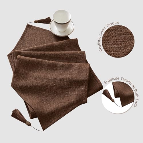 WAITER TREE Runner da Tavolo in Biancheria Artificiale Runner per Cucina Impermeabile Decorazione per Casa Sala da Pranzo Letto Caffetteria (35x300cm, Marrone)